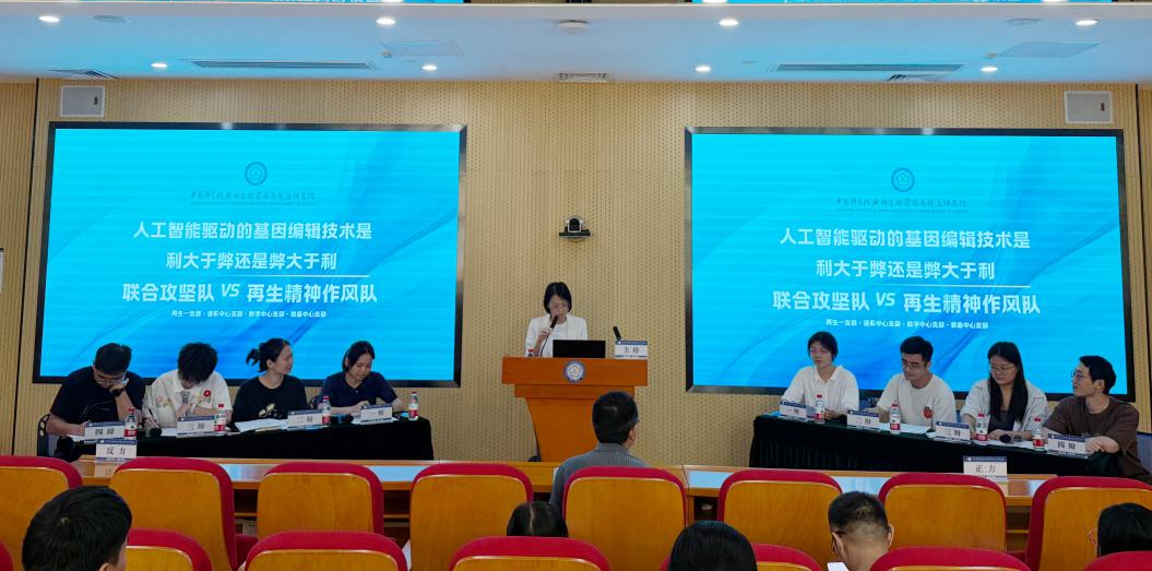 賽場上,正方“再生精神作風(fēng)隊”立足國家科技戰(zhàn)略,以我國罕見病攻關(guān)成果為例,論證了AI賦能基因編輯在疾病治療、農(nóng)業(yè)升級等領(lǐng)域的突破性價值;反方“聯(lián)合攻堅隊”則以“基因編輯嬰兒事件”為引,警示技術(shù)濫用可能引發(fā)的社會公平失衡與生態(tài)擾動,呼吁強化倫理審查。雙方憑借深厚的專業(yè)素養(yǎng),深入探討科技與人文的辯證關(guān)系。