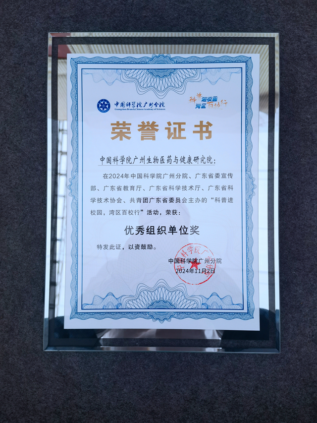 榮獲“中國(guó)科學(xué)院科普進(jìn)校園灣區(qū)百校行”優(yōu)秀組織獎(jiǎng)