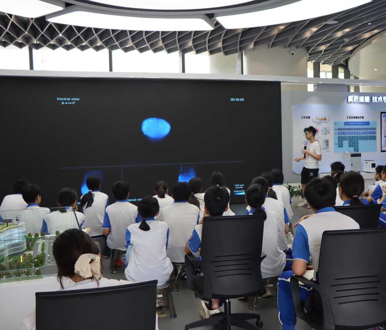 5月24日,由中國科學(xué)院廣州生物醫(yī)藥與健康研究院牽頭建設(shè)的國家“十四五”重大科技基礎(chǔ)設(shè)施——人類細(xì)胞譜系大科學(xué)研究設(shè)施(簡稱“細(xì)胞譜系設(shè)施”)在廣州國際生物島舉辦了設(shè)施開放日活動,活動以“生命數(shù)字化大國重器‘大揭秘’”為主題,為來自廣州科學(xué)城中學(xué)的40余位學(xué)生和老師詳細(xì)介紹了這一剛剛正式啟動建設(shè)的大科學(xué)設(shè)施。活動集合參觀、前沿科學(xué)儀器演示、科普講座和問答交流等多種形式。一方面具體且生動展現(xiàn)了細(xì)胞譜系設(shè)施建設(shè)內(nèi)容、建設(shè)進(jìn)展以及預(yù)期目標(biāo),一方面深入淺出地講解了生命科學(xué)的前沿和核心細(xì)胞譜系研究的基本知識以及其在推動疾病精準(zhǔn)治療、縮短藥物研發(fā)周期等方面的重要作用,拉近了公眾與大科學(xué)設(shè)施的距離,充分激發(fā)了學(xué)生們對生命科學(xué)的興趣和探索欲望。